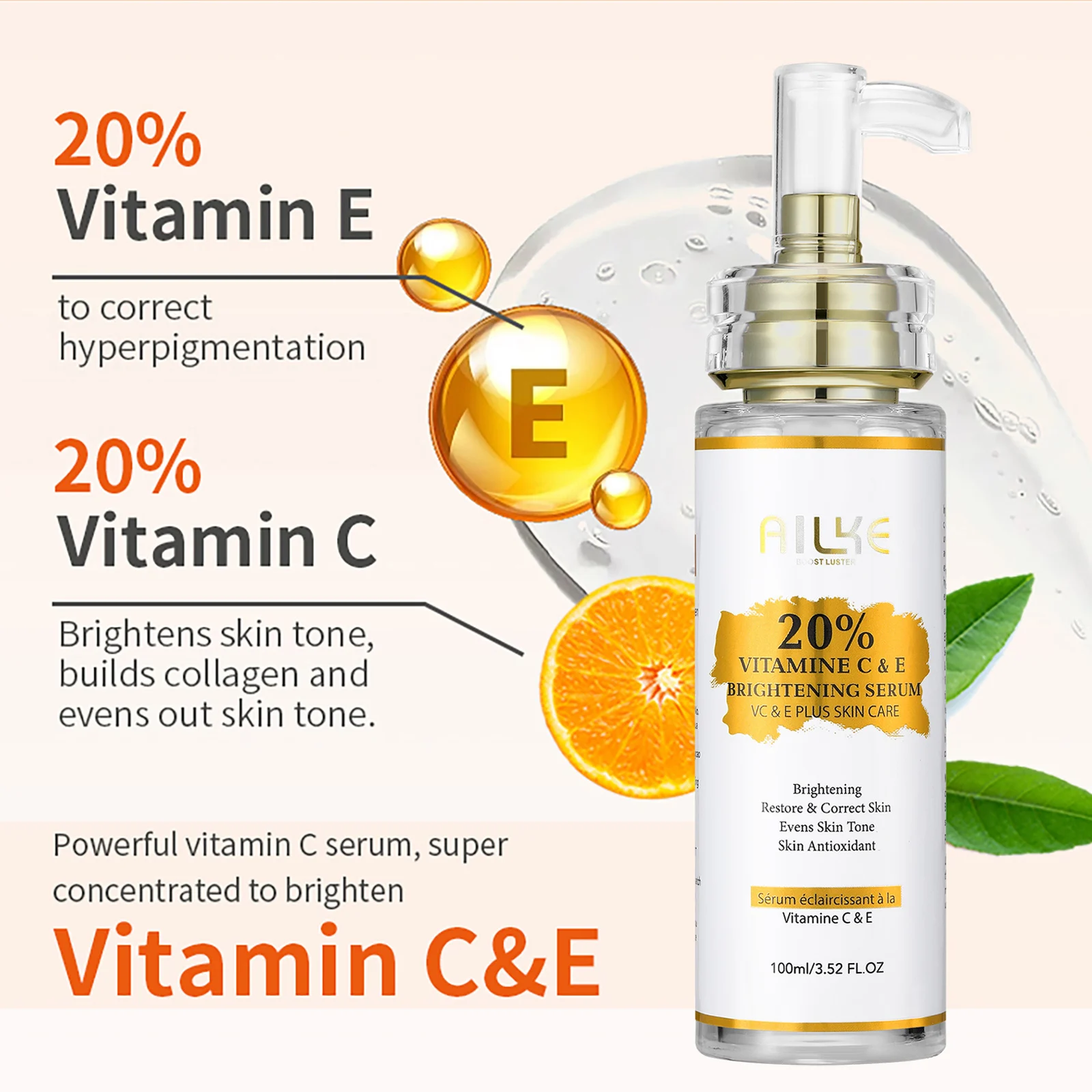 1. The perfect formula of Vitamin C + E instantly brightens the complexion, corrects hyperpigmentation and discoloration