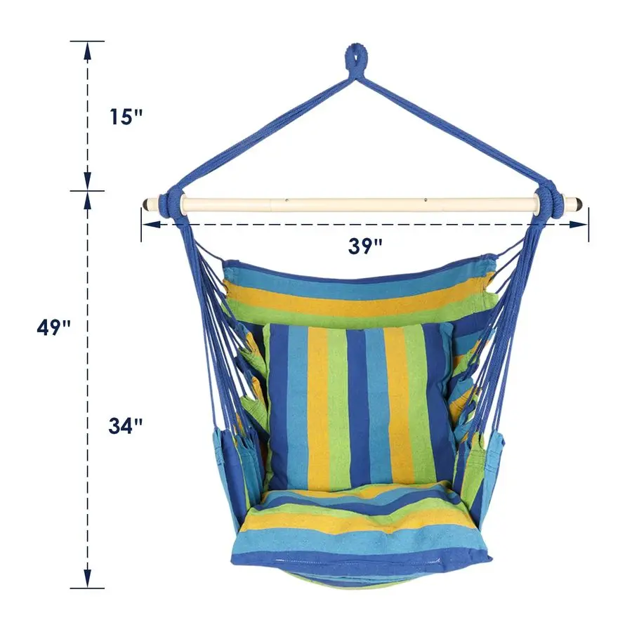 Includes 1 Hammock Chair SwingBlue amp Green, 2 Seat Cushions and 1 Carabiner, hanging hardware is not included.