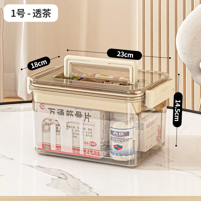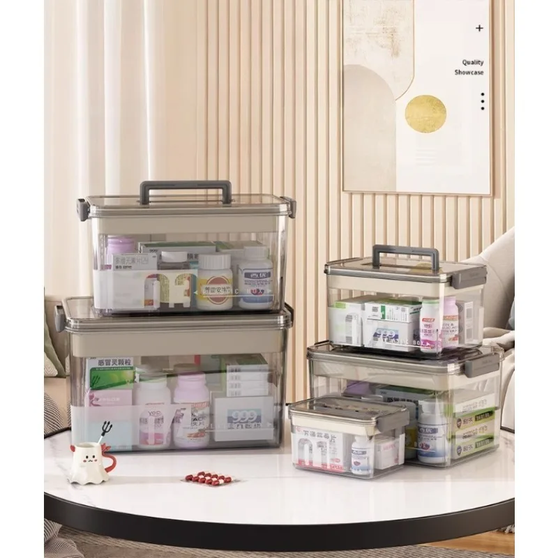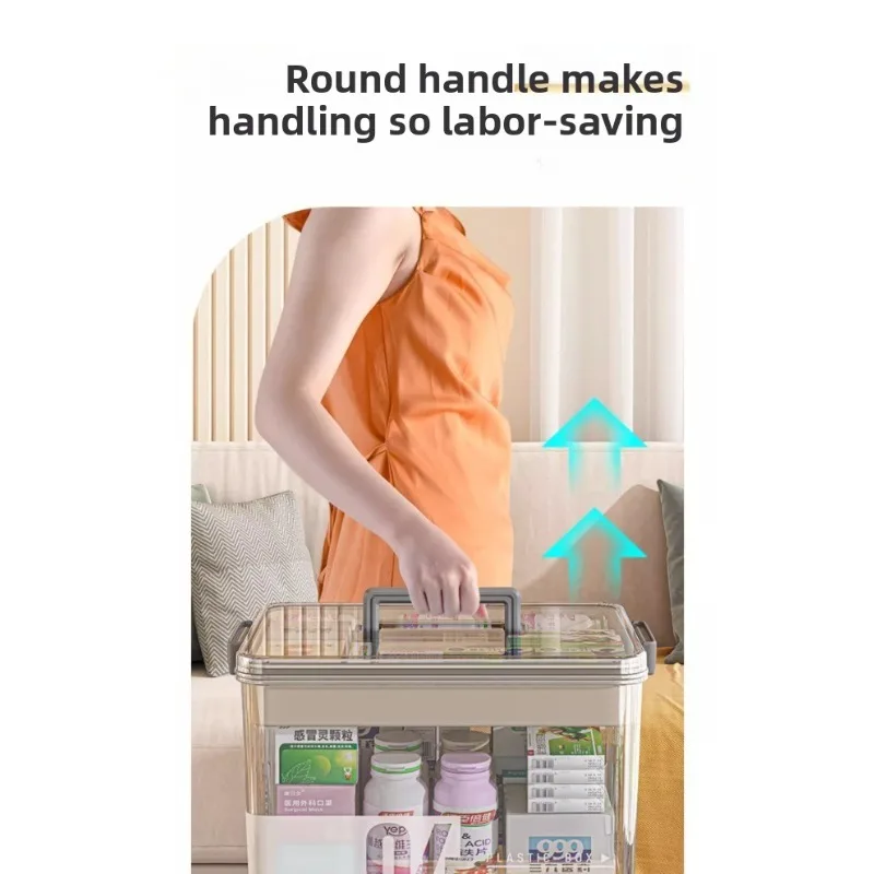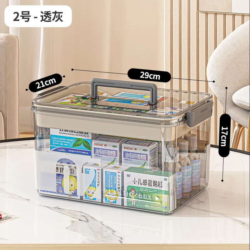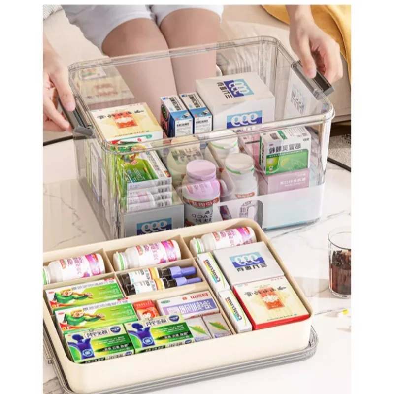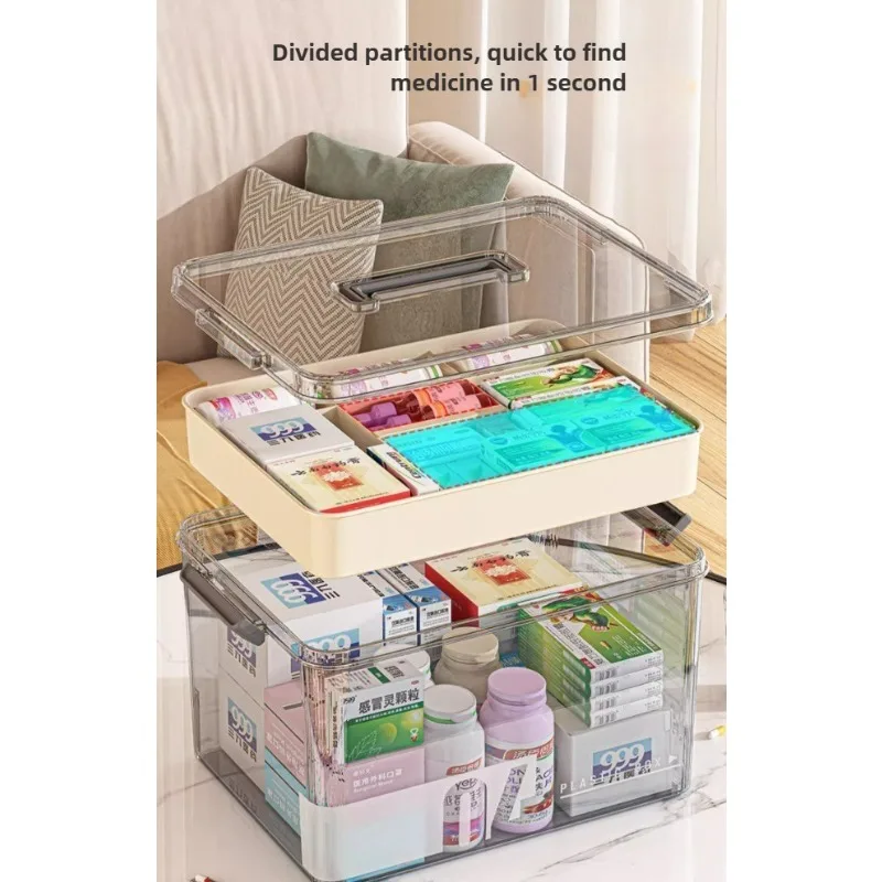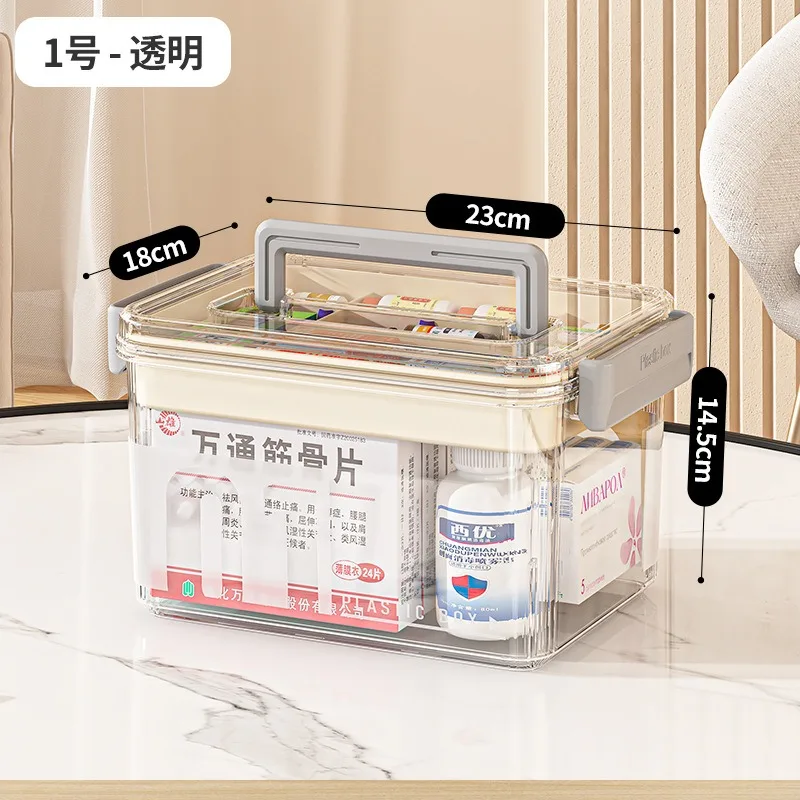 Household transparent large-capacity storage box, family medical box, multi-layer medicine box, portable medicine storage box