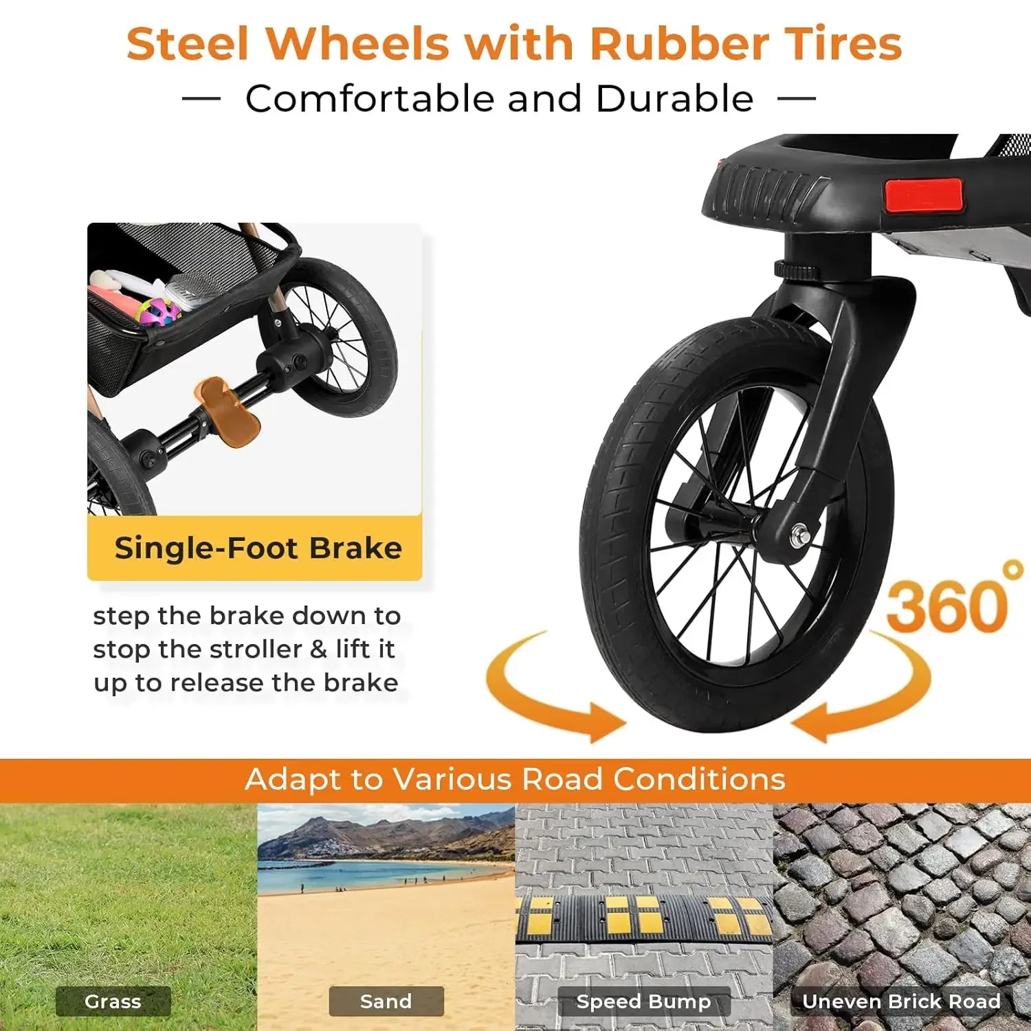 Pet Stroller, Premium 3-in-1 Large Dog Stroller for Cats/Dogs with Detachable Carrier, Zipperless Dual Entry, Foldable Jogging