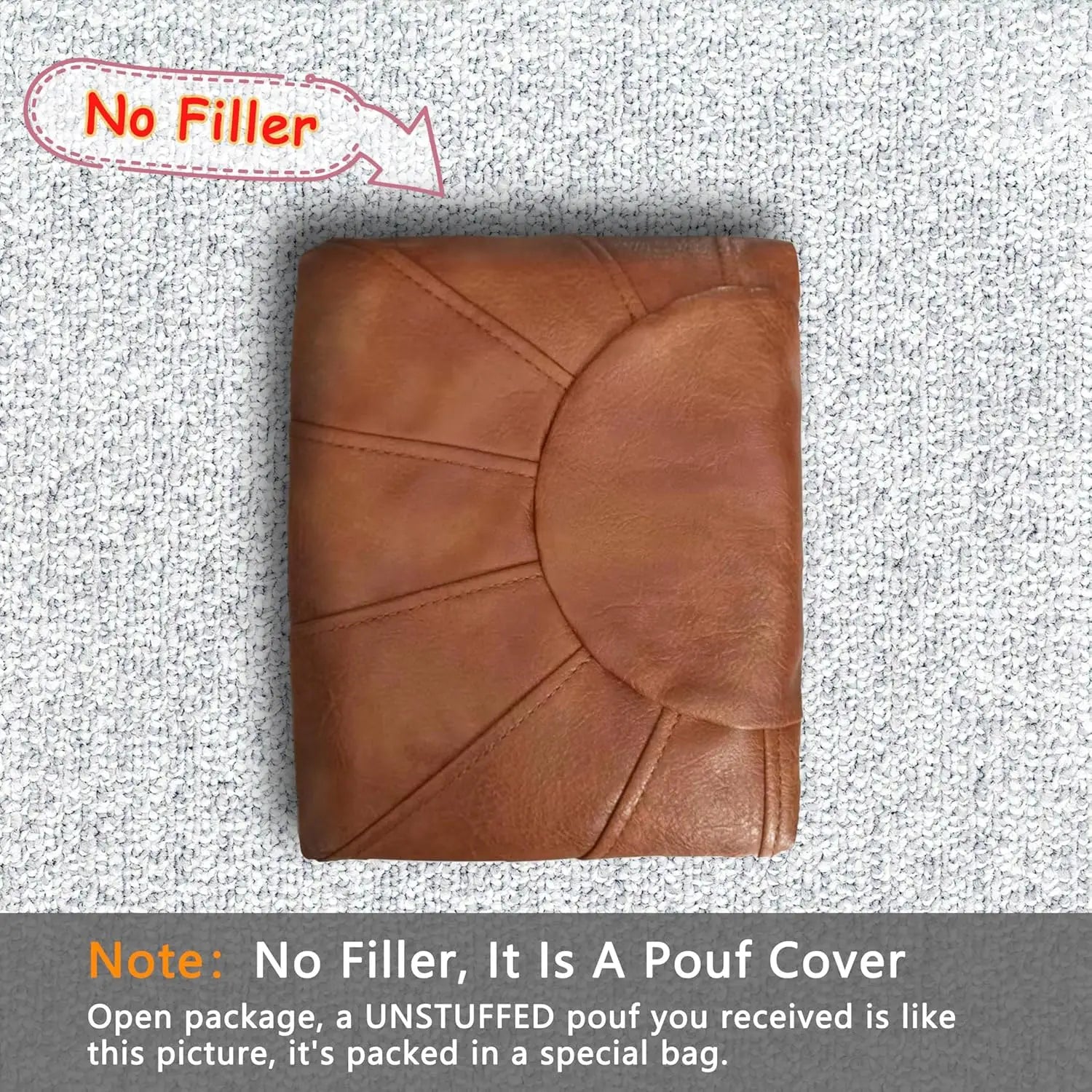 Unstuffed Moroccan Storage Pouf Foot Stool Ottoman Seat Handmade Faux Leather Bean Bag Floor Chair Foot Rest for Living Room